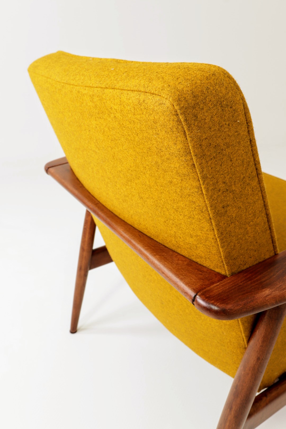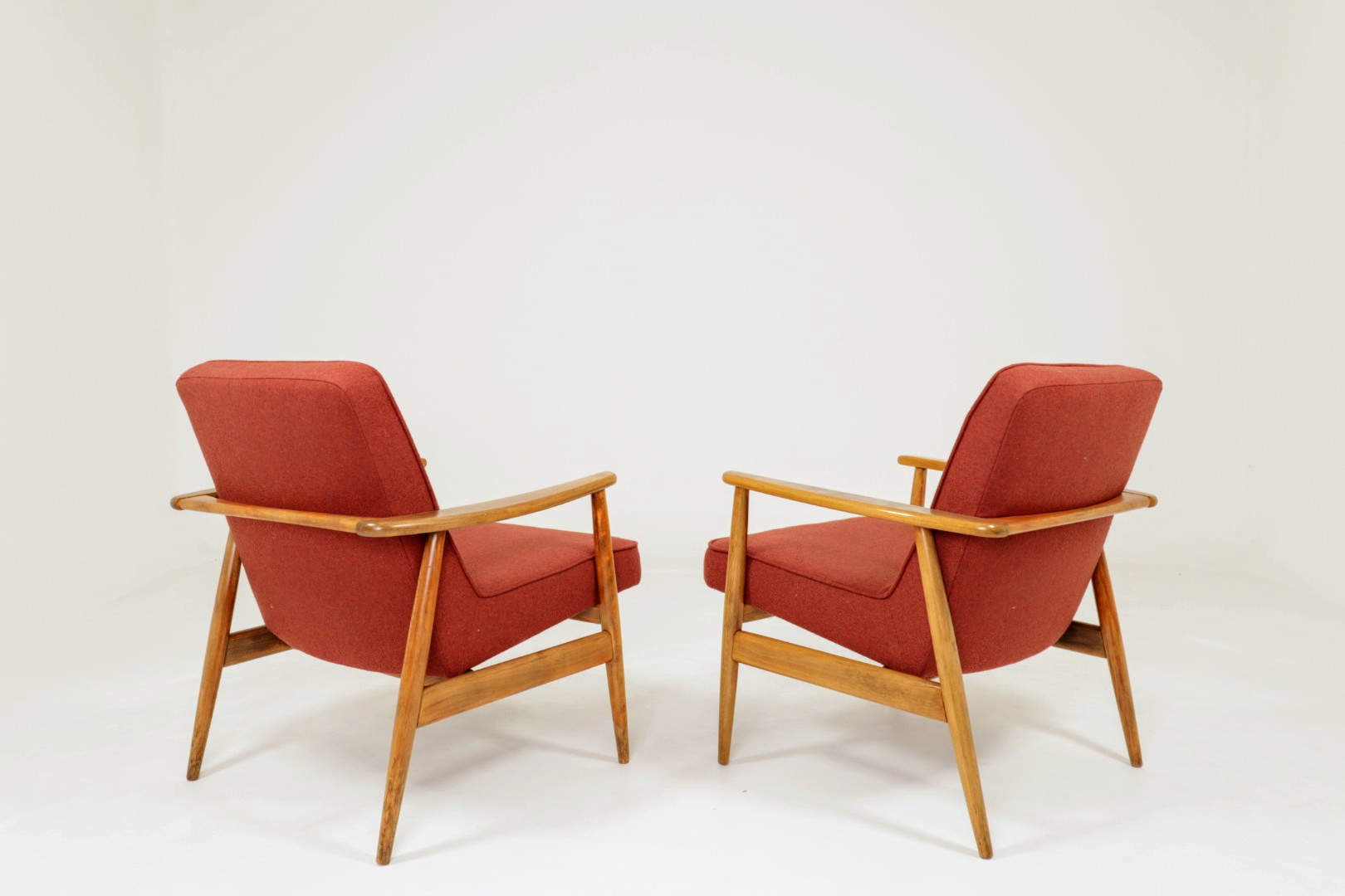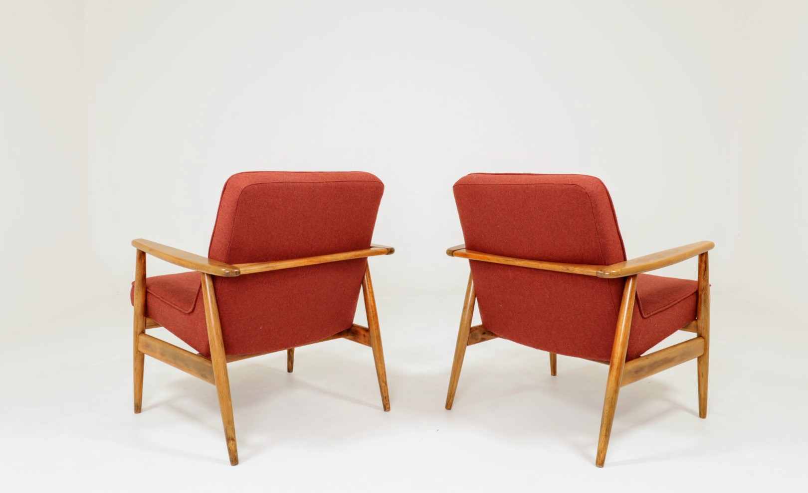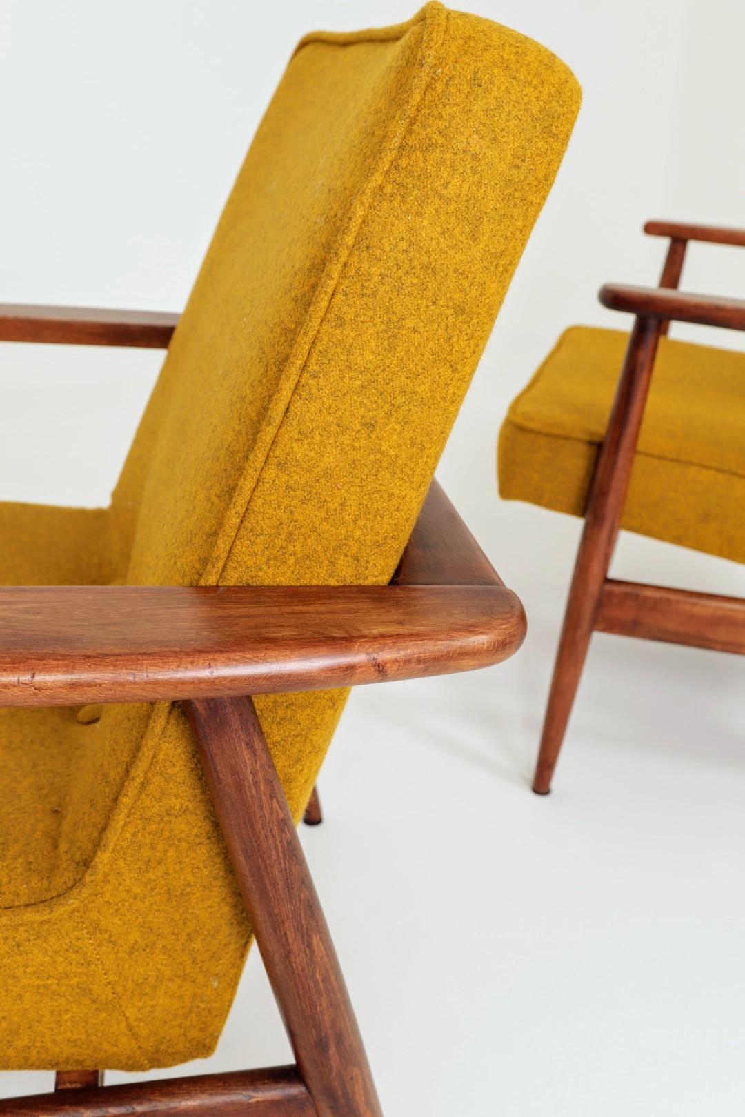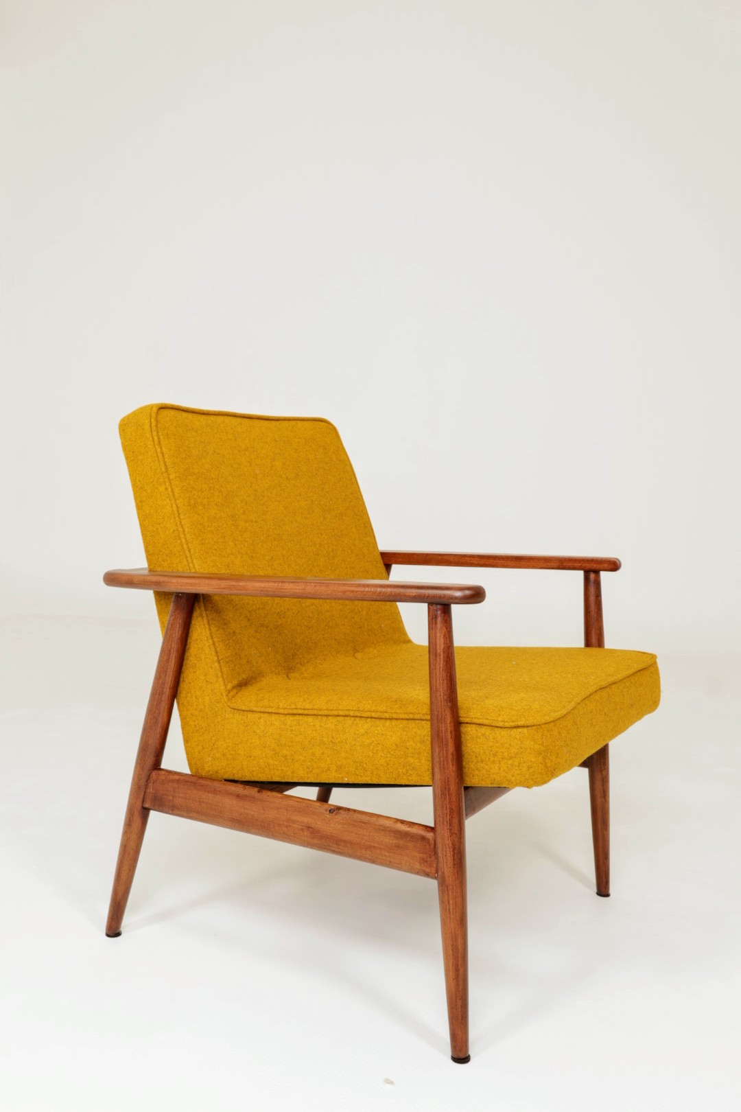 Designed in the early 1960s by Juliusz Kędziorek, this armchair is a celebrated icon of Polish industrial design. Depending on the historical catalog, it is identified as Type 0/300-192 (from the Bystrzyca Furniture Factory) or Type 300-193 / GFM 63 (from the Gościcino Furniture Factory). Its most striking feature is the beautifully sculpted beechwood frame, with characteristic armrests that elegantly wrap around the backrest. Despite its compact and slender silhouette, it offers exceptional comfort, making it a perfect fit for both cozy apartments and sophisticated lounge areas.
