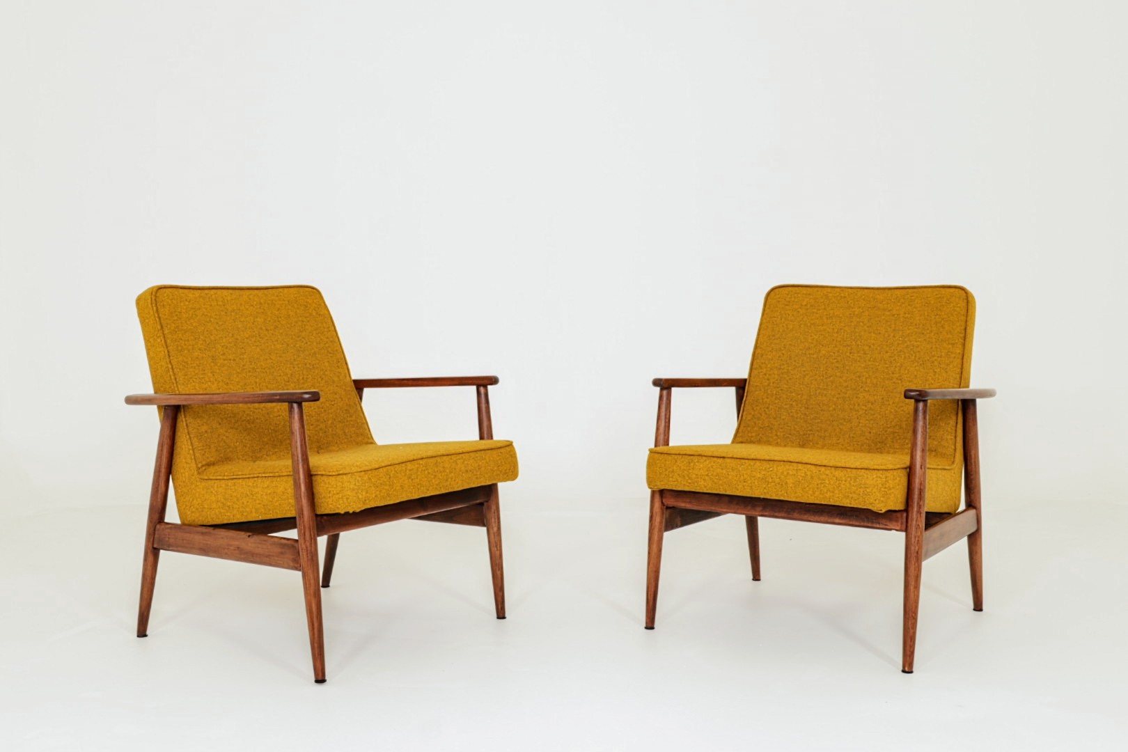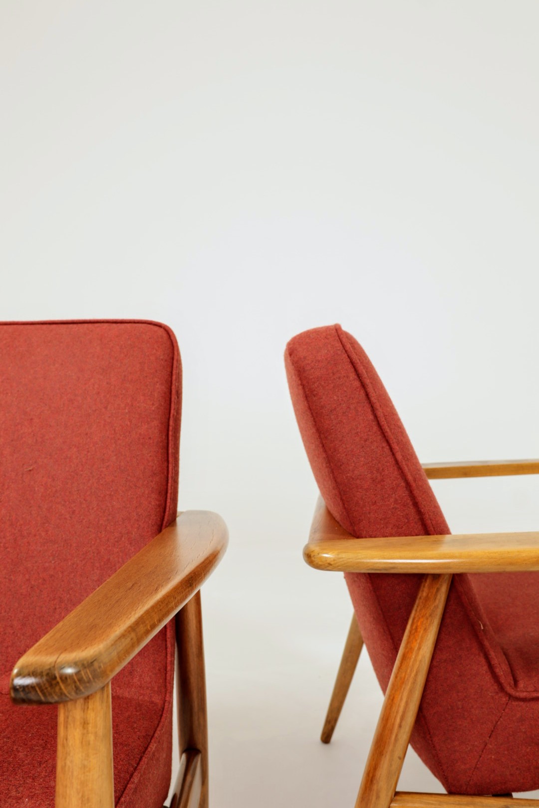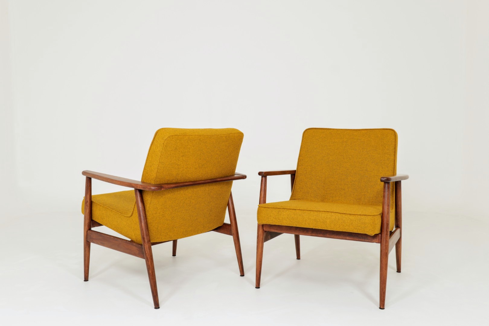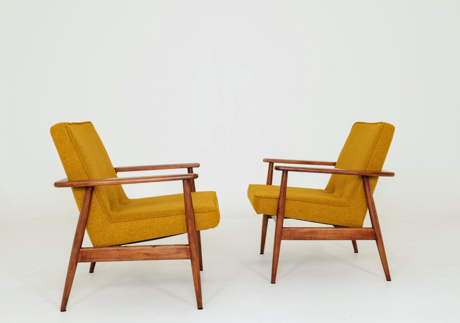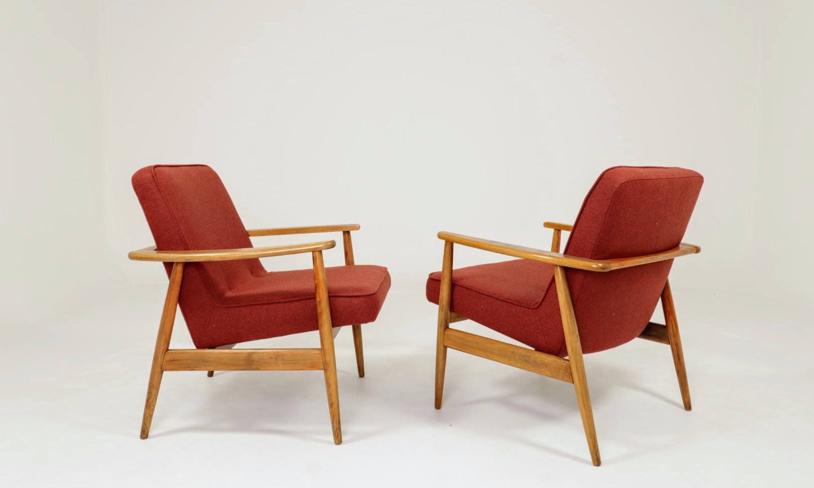 Designed in the early 1960s by Juliusz Kędziorek, this armchair is a celebrated icon of Polish industrial design. Depending on the historical catalog, it is identified as Type 0/300-192 (from the Bystrzyca Furniture Factory) or Type 300-193 / GFM 63 (from the Gościcino Furniture Factory). Its most striking feature is the beautifully sculpted beechwood frame, with characteristic armrests that elegantly wrap around the backrest. Despite its compact and slender silhouette, it offers exceptional comfort, making it a perfect fit for both cozy apartments and sophisticated lounge areas.