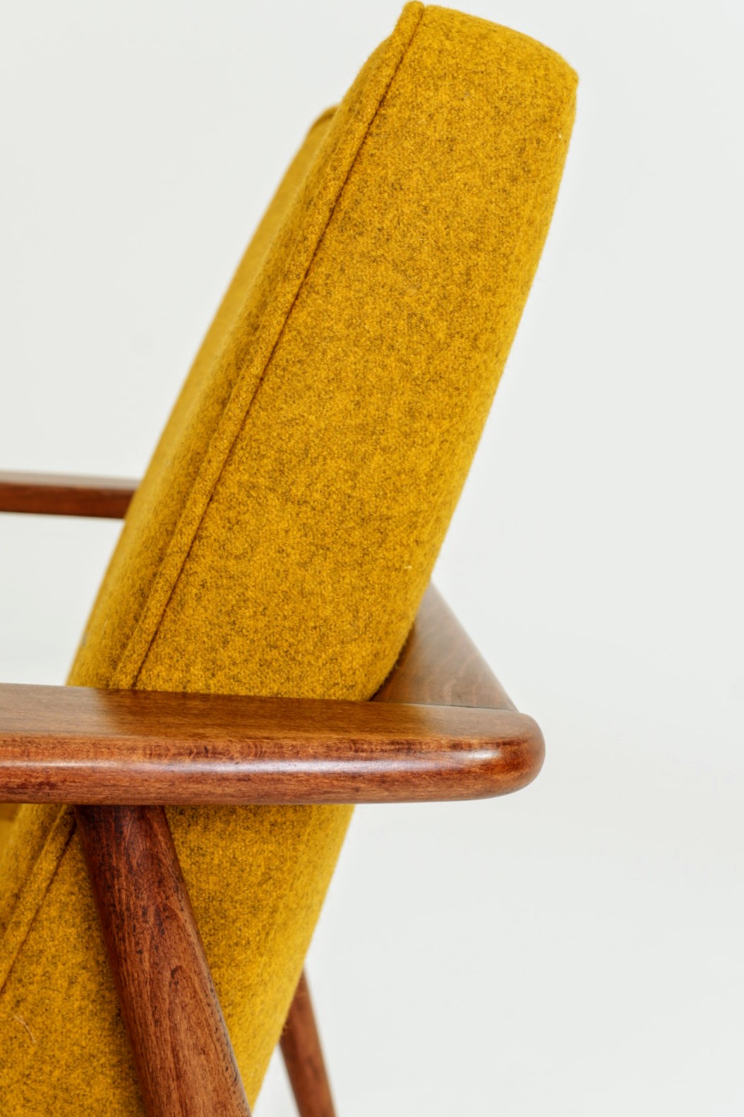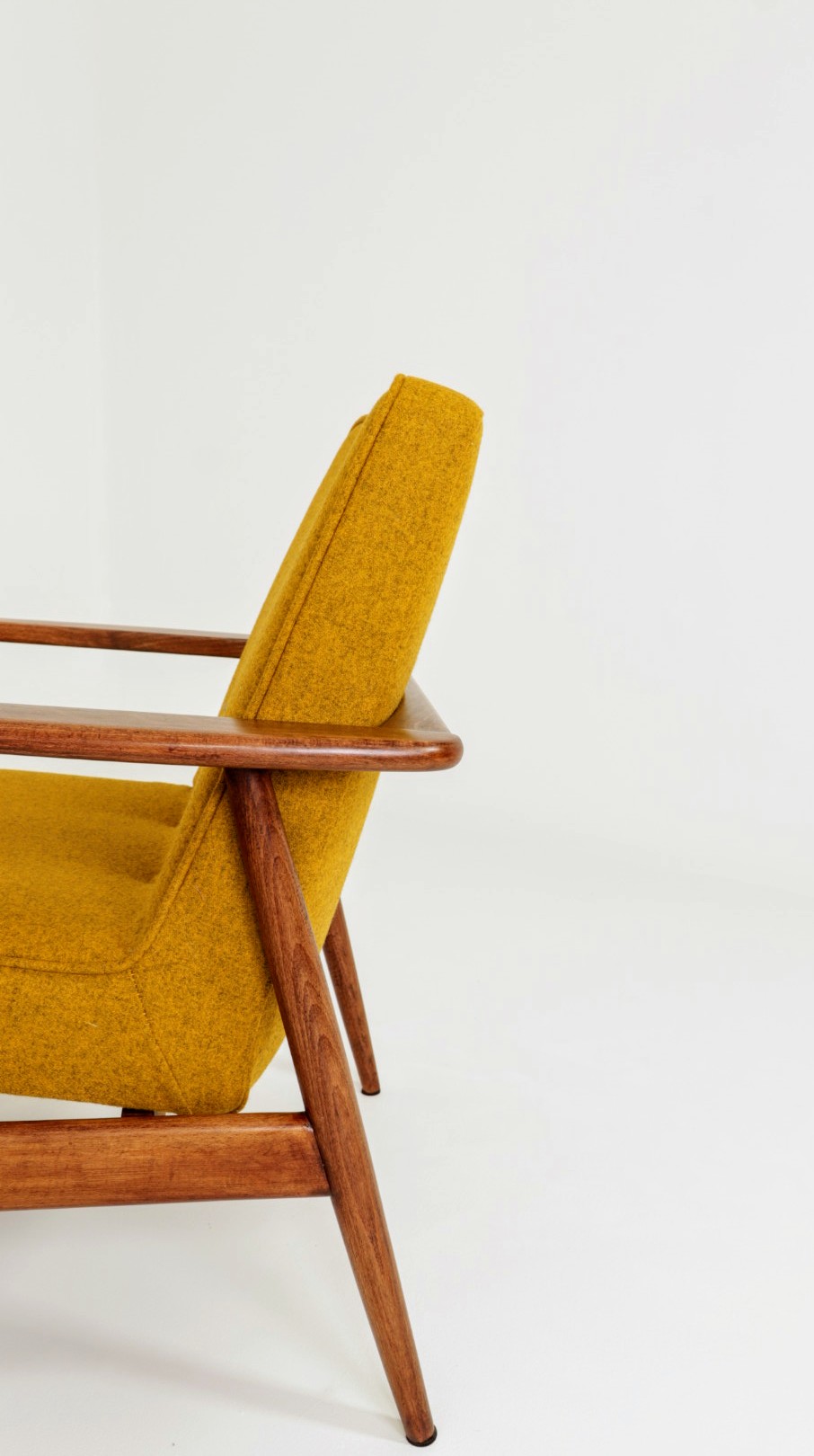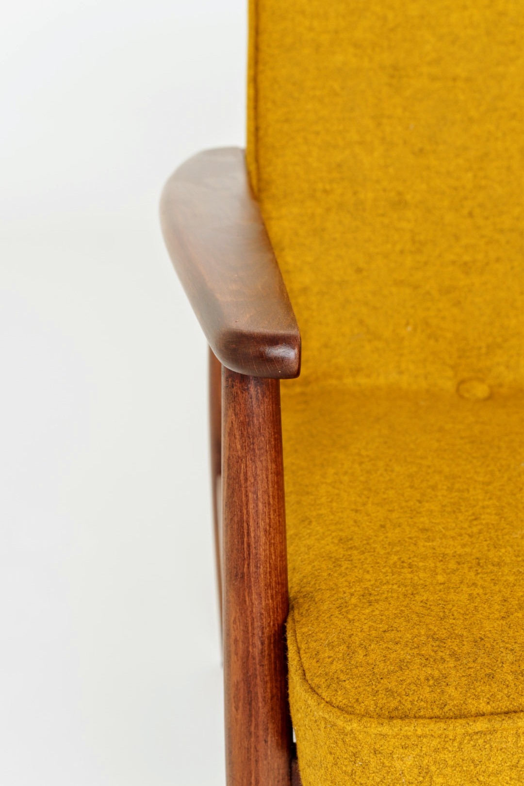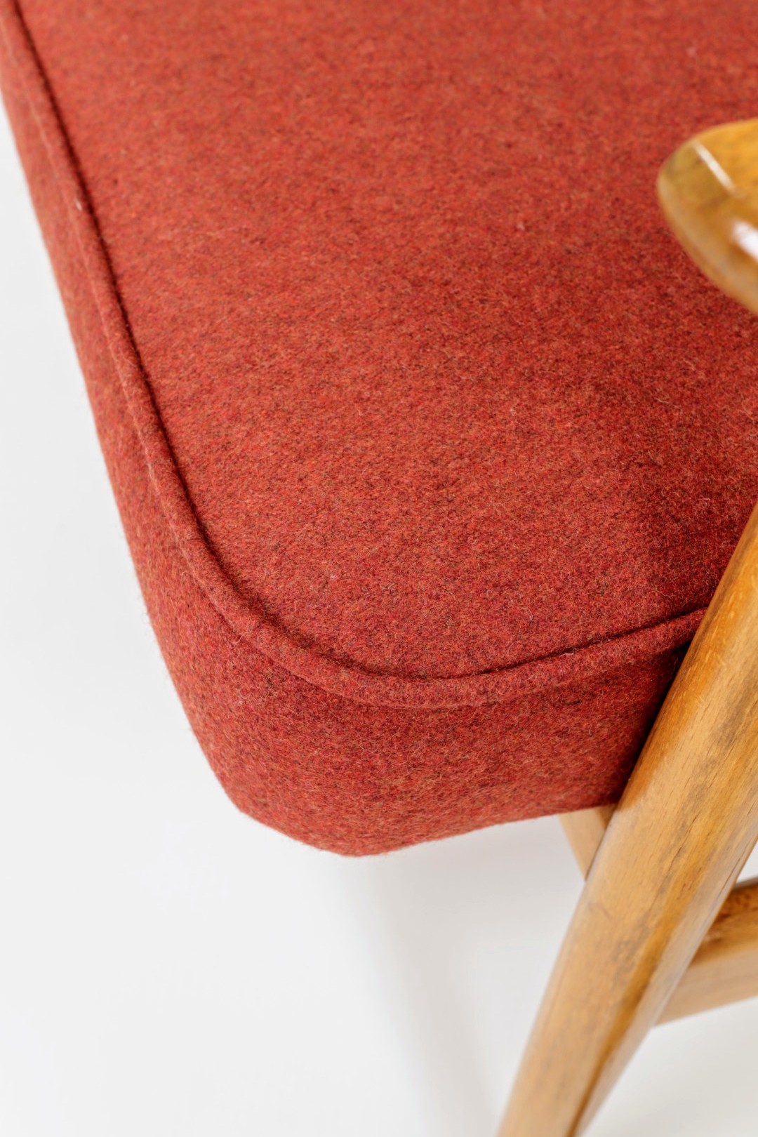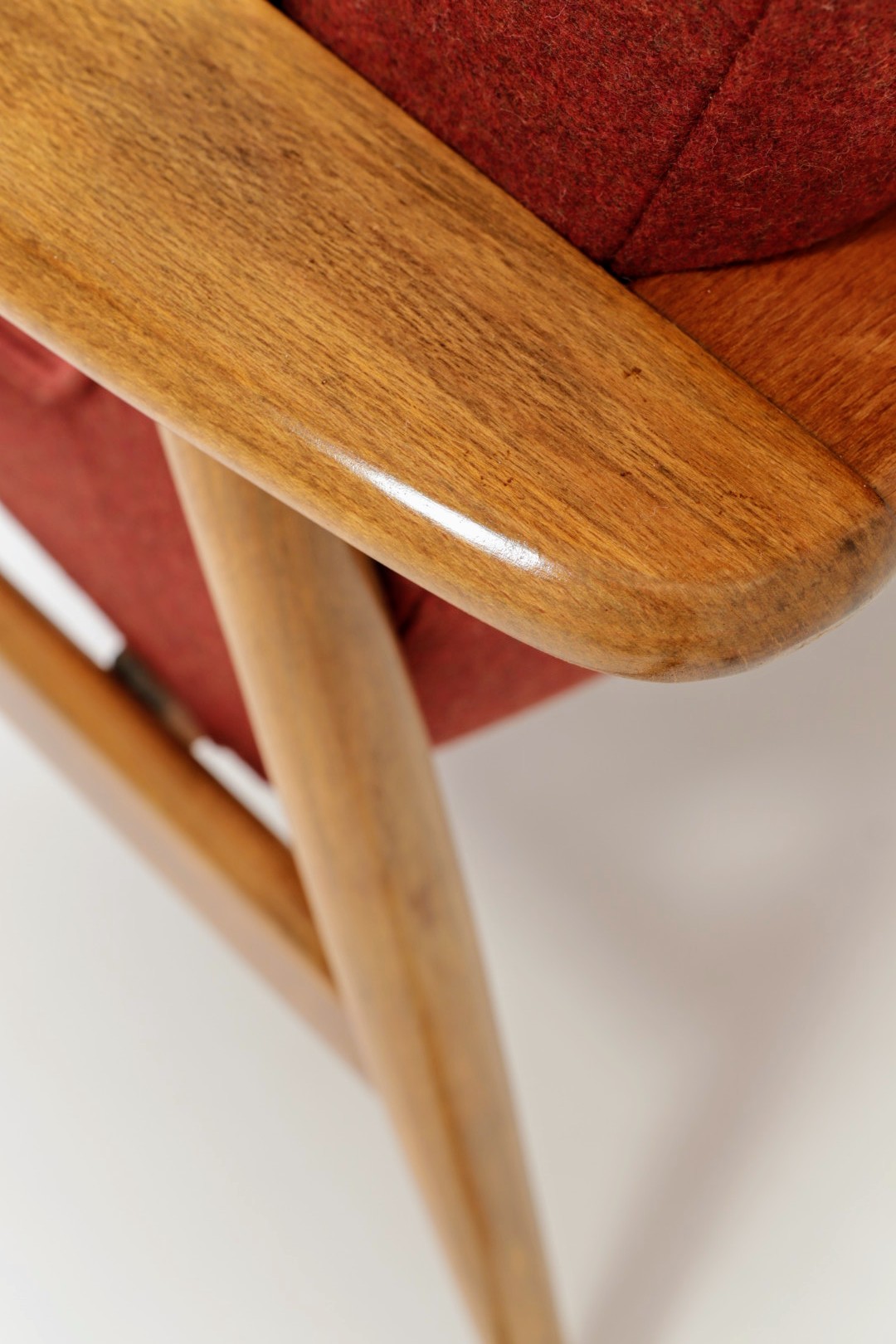 Designed in the early 1960s by Juliusz Kędziorek, this armchair is a celebrated icon of Polish industrial design. Depending on the historical catalog, it is identified as Type 0/300-192 (from the Bystrzyca Furniture Factory) or Type 300-193 / GFM 63 (from the Gościcino Furniture Factory). Its most striking feature is the beautifully sculpted beechwood frame, with characteristic armrests that elegantly wrap around the backrest. Despite its compact and slender silhouette, it offers exceptional comfort, making it a perfect fit for both cozy apartments and sophisticated lounge areas.